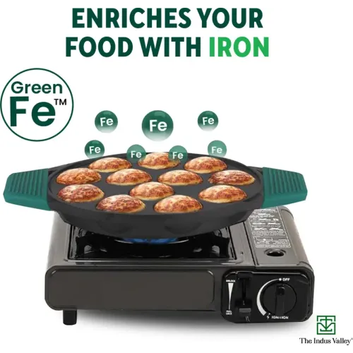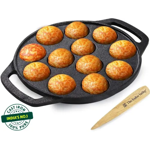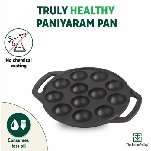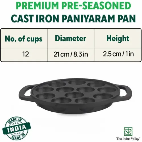 The Indus Valley Pre-Seasoned Cast Iron Paniyaram Pan With Spatula - 8.3 inch, 12 pit Paniarakkal Set 0 L capacity 21 cm diameter (Cast Iron)