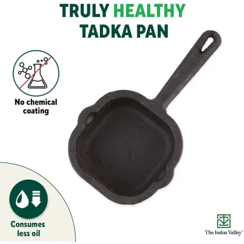 The Indus Valley Pre-Seasoned Cast Iron Vaghar/Chounk Pan for Frying Dal/Spices - 5.3inch Tadka Tadka Pan 13.4 cm diameter 0 L capacity (Cast Iron, Induction Bottom)