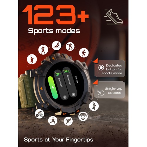 - 290+ Cloud-based Watch Faces with Custom Watch Face Option | 123+ Sports Modes.