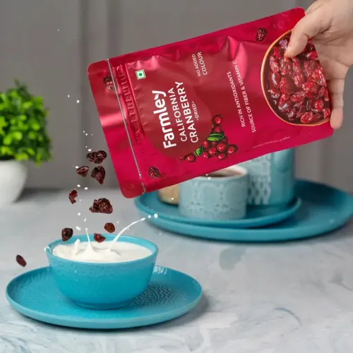 Farmley Premium California Whole Dried Cranberries 200g, Cranberries are a popular superfood. You can make a lot of food more nutritious and tasty by adding dried cranberries to them. They are popular in trail mix, salads, bread, with cereals, or eaten on their own.