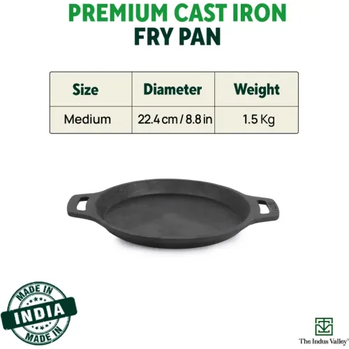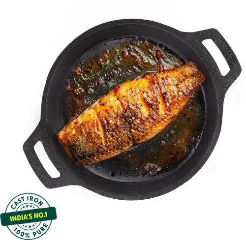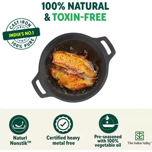 The Indus Valley Pre- Seasoned Cast Iron Fish Fry Pan With Double Handle
