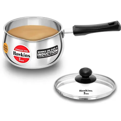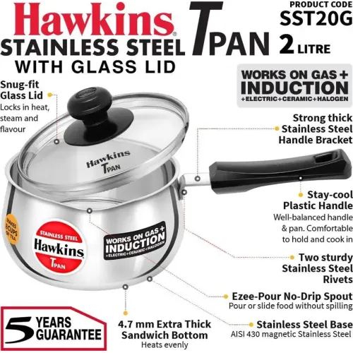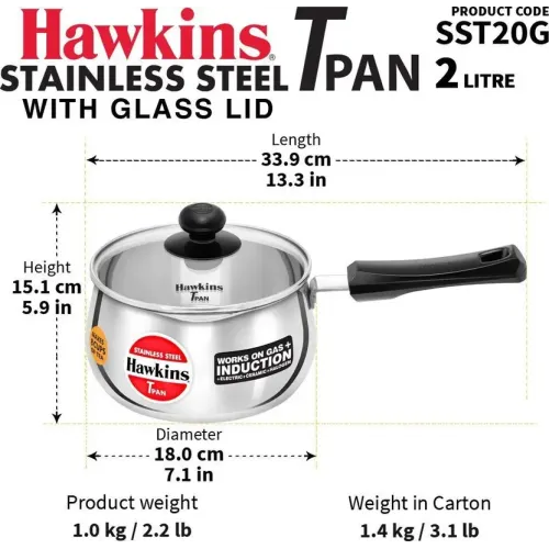 Hawkins by Hawkins Tpan with Glass (SST20G) Sauce Pan 15 cm diameter with Lid 2 L capacity (Stainless Steel, Induction Bottom)